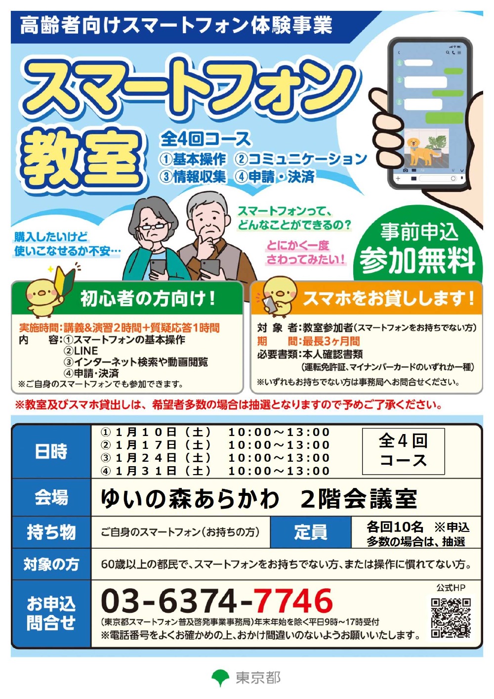 【東京都事業】高齢者向けスマートフォン体験事業「スマートフォン教室」(全4回コース)