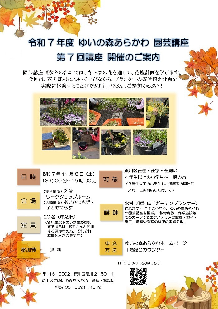 令和7年度ゆいの森あらかわ園芸講座「第7回」