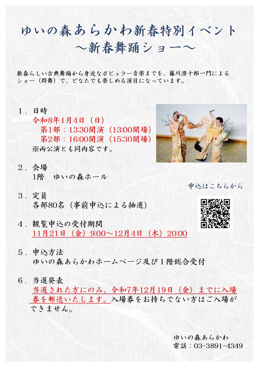 ゆいの森あらかわ新春特別イベント ~新春舞踊ショー~ を開催します